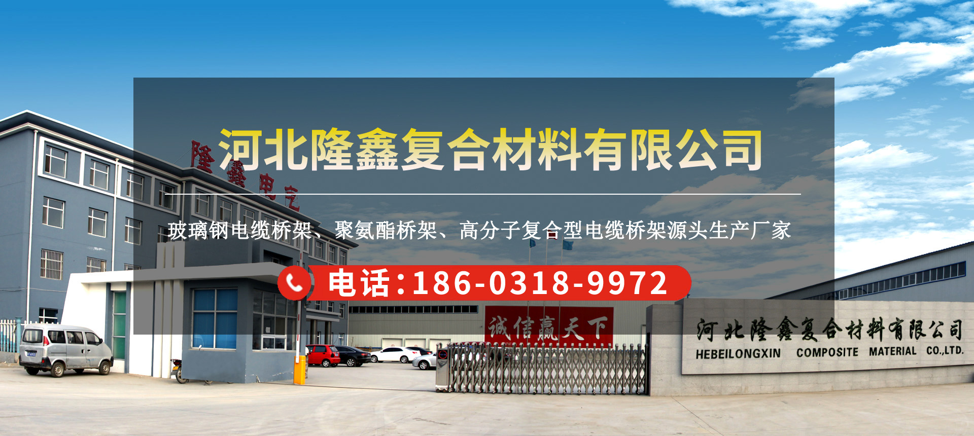 河北隆鑫復合材料有限公司(原河北隆鑫電氣設備有限責任公司)是一家從事玻璃鋼電纜橋架、鋼制電纜橋架、高分子復合電纜橋架、環氧樹脂復合型橋架、聚氨酯電纜槽的科研、開發、設計、生產、安裝為一體的企業。隆鑫主導產品玻璃鋼電纜橋架機械強度高,它既有金屬橋架的剛性又有玻璃鋼橋架的韌性,耐腐蝕性能好、抗老化性能強、造型美觀、安裝方便、使用壽命長。